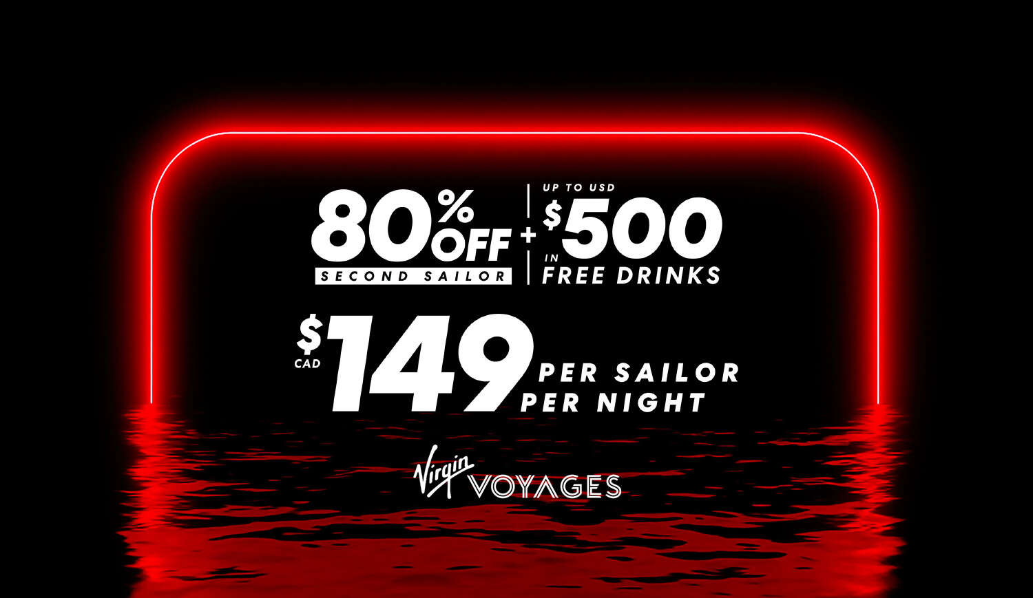 80% off 2nd Sailor + up to $500* USD Free Drinks